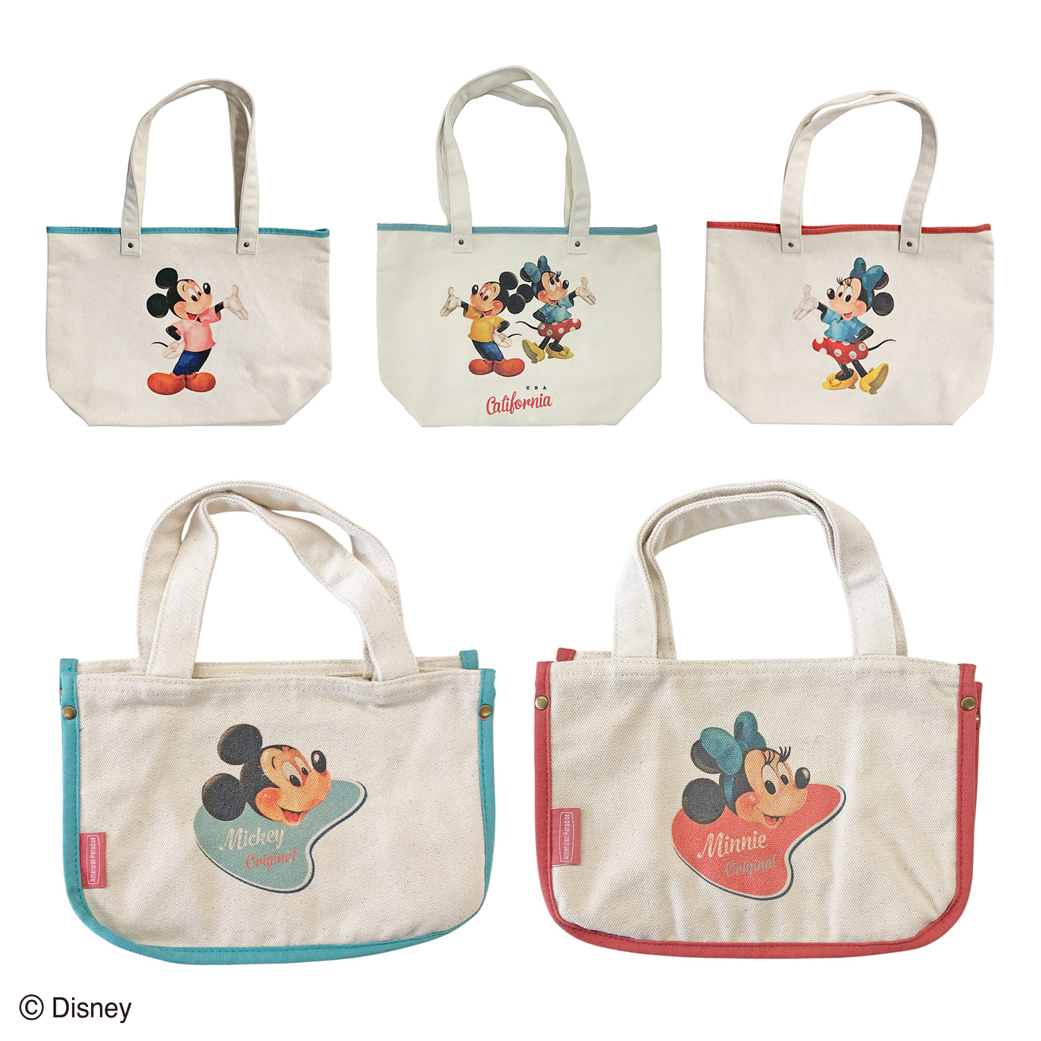 柔らかで、どこか懐かしいミッキー&ミニーが、バッグ、ポーチ、雑貨になって毎日を彩ります。