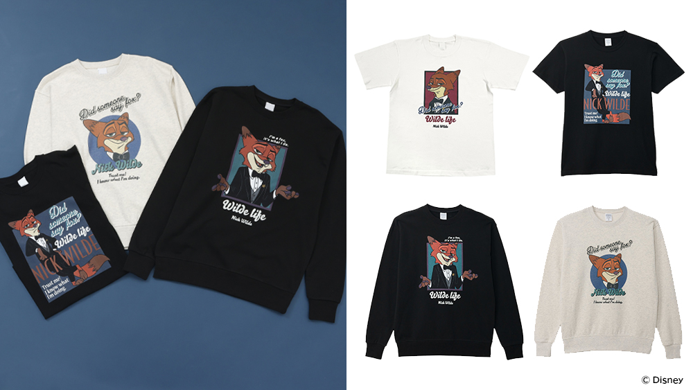 映画『ズートピア2』に登場する、タキシード姿のニックを大胆にデザインしたアパレルコレクション。普段使いしやすいベーシックカラーで、それぞれM・Lの2サイズ展開です。